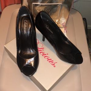 Delicious Black Patent Peep Toe Heels Women’s Size 7