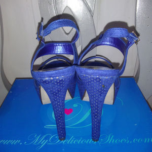 Delicious Heel. Beautiful blue color with silver polka dots located along the heel.