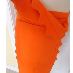 Turn heads in this bright orange mini skirt with flower detail & full pocket! Perfect for fun days with sandals, beachy coverups or plain out on the town with heels. NEVER WORN
