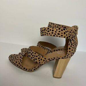 Elevate your style with these stunning women's heels by Delicious. The open-toe, strappy design features a trendy leopard print pattern and a high block heel for added height. The zip closure ensures a secure fit, while the cotton upper material offers breathability and comfort.