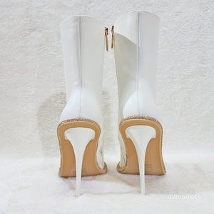 Delightful White Upper High Heel Ankle Boots Rose Gold Rhinestone Trim and Laces