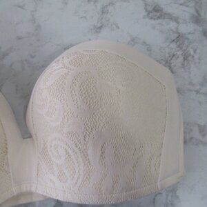 Delimira Bra 36D Cream Lace Strapless Push Up Wireless Wire Free