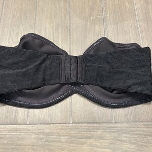 This elegant black strapless bandeau features a delicate lace design, perfect for adding a touch of sophistication to your intimate collection. Ideal for layering or wearing alone.