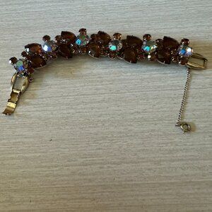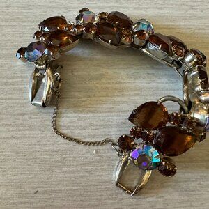 Vintage, circa late 1940's or early 1950's, Delizza and Elster, Juliana Line, 5 link bracelet with Topaz and Romance Stones in very good condition. All stones are present with no chips or cracks.
