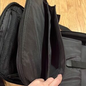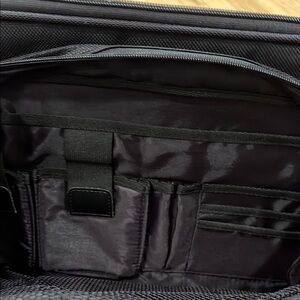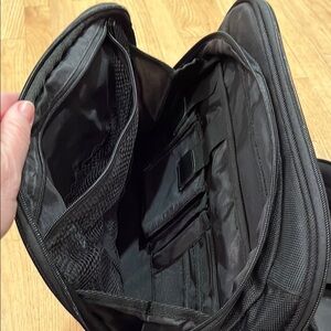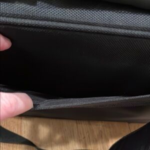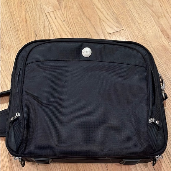 Sleek and durable, this black Dell hard computer bag is perfect for everyday use. Its stylish design and high-quality material make it a must-have for travel! Handle and detachable shoulder strap. One zipper is missing its pull (see photo) Excellent condition