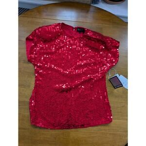 Della Roufogali Red Silk Sequin Top S NWT '80s NYE Party Shoulder Pads Holiday Glam