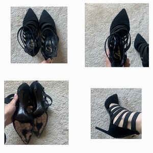 Step out in style with these elegant black strappy heels. Perfect for any occasion, these shoes offer both comfort and sophistication.