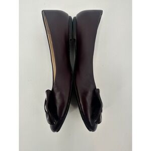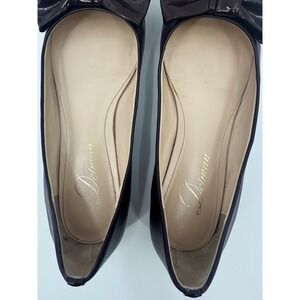Delman Ballet Flats Brown Leather Bow Accent Slip On Shoes