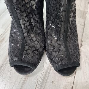 Delman Heeled Booties Peep Toe 10 Sequins Lace Zip Up Party Cocktail Sexy Black