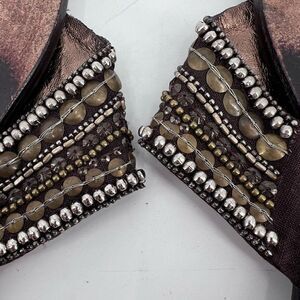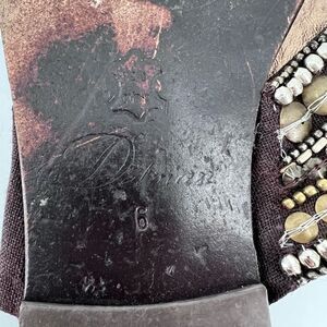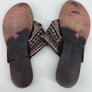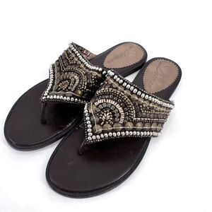 Delman heavily beaded leather flip flop sandals size 6 brown