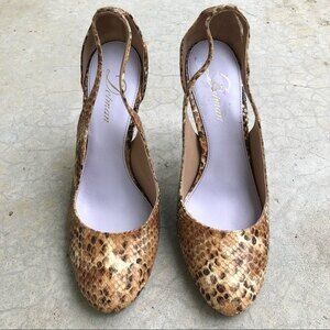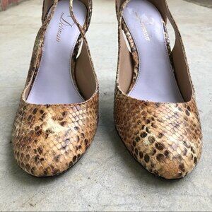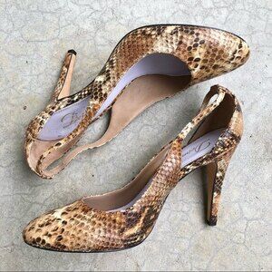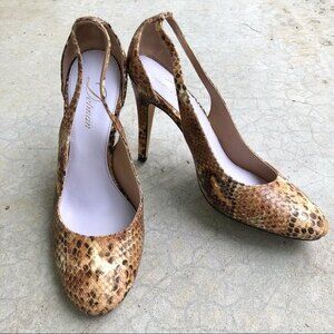 Delman snakeskin leather pumps heels cutout brown. 4” stiletto heels. Leather soles. Cutouts on the sides.