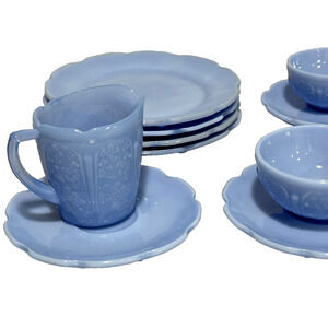 Delphite Blue Jeannette Child's Tea Set Cups Saucers Creamer Plates Lot 12 PCS