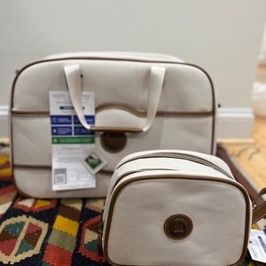 The luxurious Delsey Chatelet Air 2.0 champagne/white suitcase set, brand new and still in the box, offered at a steep discount to retail price. We got 2x everything as a wedding gift, but my husband prefers to trade his in for brown/black. Photos shown are of my half of the set, but you would be getting them unboxed. Makes a perfect holiday gift for someone special, or treat yourself!