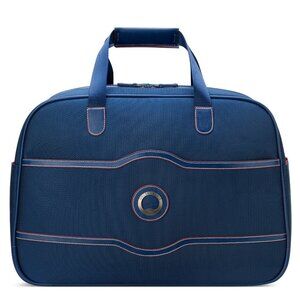 New with tags. The Delsey Paris CHATELET AIR 2.0 Weekender in elegant Blue blends Parisian style with smart functionality. Designed for chic and organized getaways, this lightweight yet spacious duffel offers premium materials, refined faux-leather trim, and travel-ready features. Perfect as a carry-on, overnight bag, or sophisticated companion to your matching Delsey luggage.