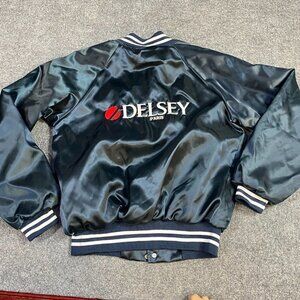 Delsey Paris Satin Jacket M Blue Vintage Embroidered Nylon Made in USA