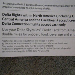 Delta Air Lines 2010 Airplane Menu - DL Airlines On Board Passenger Food Drink