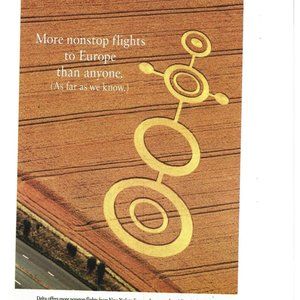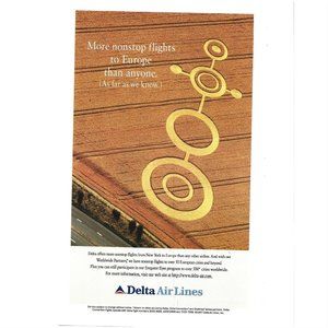 Delta AirLines Flights Europe Crop Circles 1990s Vintage Print Ad