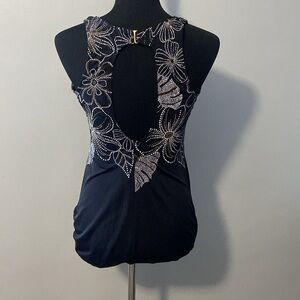Delta Burke Swimwear One Piece Swimsuit with white and gold floral pattern. Sz 18W. Clean nice condition