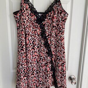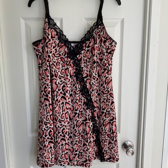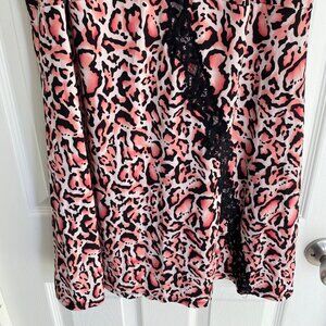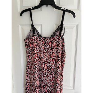 Delta Burke Womens Pink & Black Leopard Print Lace Trim Nightgown Slip Dress