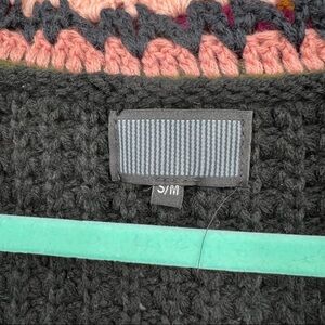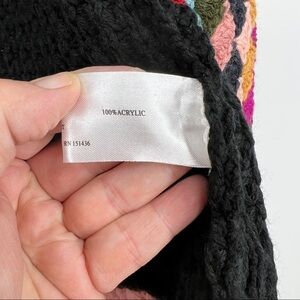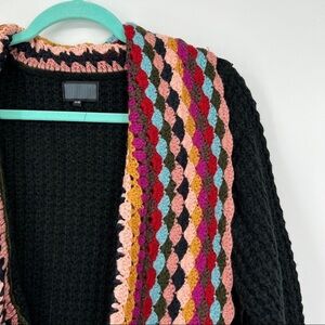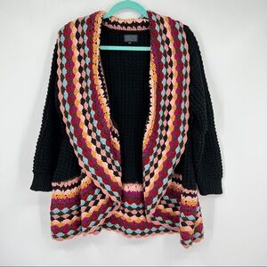 Delta Designs Long Sleeve Multicolor Black Crocheted Contrast Cardigan Sweater