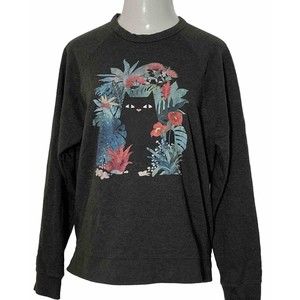 Delta Fleece Sweatshirt Top Black Cat Hawaii Popoki Floral Long Sleeve XL