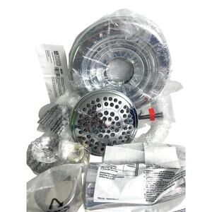 Everything is new in box except for the shower head with water markings and scratches from previous use. Everything is included except for the MultiChoice® Universal Valve R10000-UNBXHF to complete the unit.