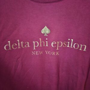 Delta Phi Epsilon Long Sleeve Top Crewneck Burgundy Gold Print Casual DPhiE