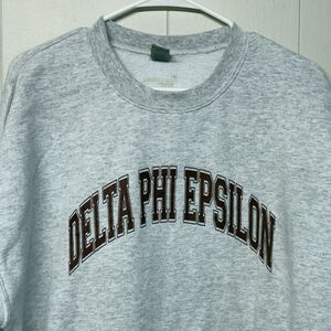 Delta Phi Epsilon Spellout Letters Pullover Crewneck Sweatshirt Gray Men XL EUC