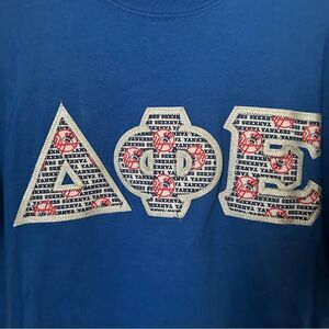 Delta Phi Epsilon Stitched Letter Tee Shirt NY Yankees Blue MLB Baseball Crew DPhiE