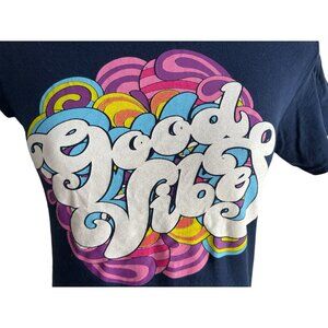 Delta Pro Weight Good Vibes Navy Blue Cotton TShirt Sz Small Womens