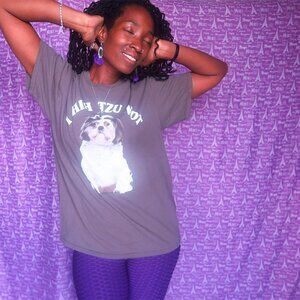 Delta Pro Weight "i shih tzu not" t-shirt tee shirt dog doggie doggy in gray and white size large.