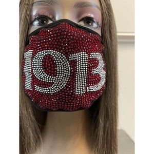 Delta Sigma Theta comfortable face mask adorned with beautiful shimmering red and crystal clear rhinestones that spell out 1913.