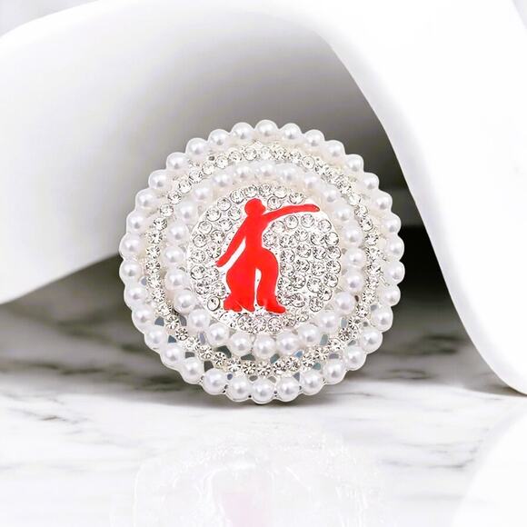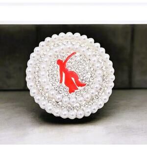 Delta Sigma Theta Brooch Design with Rhinestone and Pearls