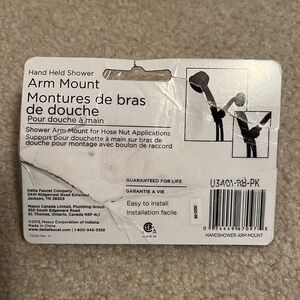 Delta Venetian Bronze Hand Held Shower Arm Mount. New in packaging. Shower arm mount for hose nut applications. Designed to hold a hand shower (sold separately) to shower arm, allowing it to be used like a fixed showerhead. Easy to install. Backed by Delta Faucet's lifetime limited warranty.