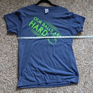 (Delta) Blue and green Seattle Our Balls Are Hard Graphic Football Tee. Great condition. Measurements in photos. Cotton and polyester. Please let me know if you have any questions. :)