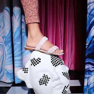 Deltan Sandal Cora Stripe Print Two Band Slides Size 6 NWT