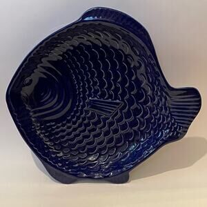 Deltis Fish Shaped Serving Dish Casserole Platter Tray Royal Cobalt Blue Pottery