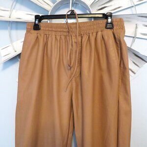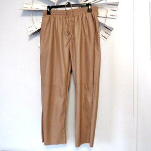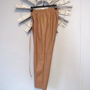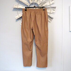 Deluc Fleetwood Faux Leather Crop Pants Size Large. Fabric is 100% Polyurethane Vegan Leather. Hand Wash. I believe the color is Nougat. Retail $90