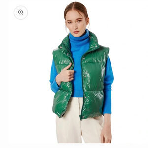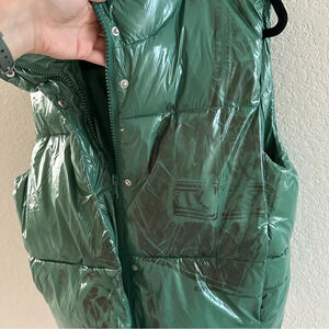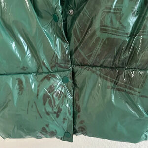This vest has black discoloration all over the front. No rips so it could be good if you can salvage it!