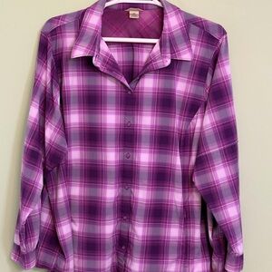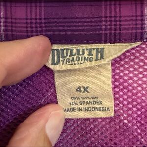 Deluth women’s Purple Plaid Button-Up Shirt size 4x nylon moisture wicking