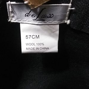 Black hat .wool .flower adornment on side.