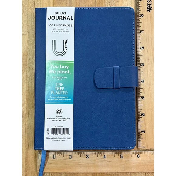 Deluxe Journal Diary Notebook Blue Faux Leather 160 Lined Pages 5.75"W X 8.25"H