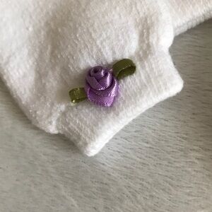 Gorgeous white cotton big bow lilac Rosetta’s Beanie Hat And Matching Mittens.