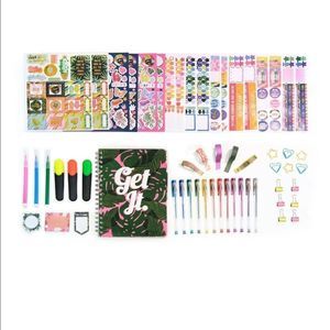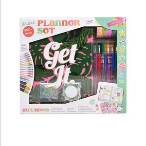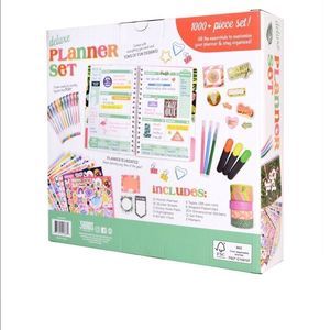 The Deluxe Planner Set has all the essentials you need to stay organized and plan your best life Organize the spiral planner included with important dates, set goals for yourself, take notes, and create to-do lists. Personalize with fun details using the colorful stickers, markers, paper clips and much more. Create weekly and monthly layouts that pop using the included colorful stickers, markers, paper clips and much more Set includes a colorful 12-month spiral planner that is undated so you can begin using your planner anytime of year, 12 gel pens, 3 markers, 3 highlighters, 16 sheets of stickers, 3 sticky note pads, 5 rolls of decorative washi tape, 1 sheet of dimensional stickers, 6 binder clips and 6 fun-shaped paper clips. The Deluxe Planner Set is the ultimate in D.I.Y planning fun Makes a great gift