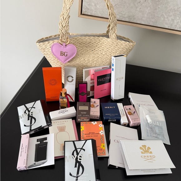 23 pieces total. Includes raffia tote from Bergdorf Goodman.