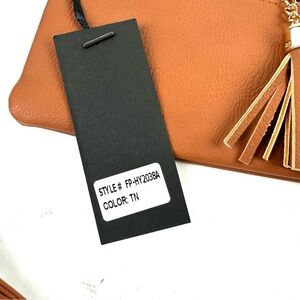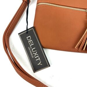 Deluxity Los Angeles Crossbody Bag Brown Tan Handbag Vegan Leather Brand New