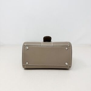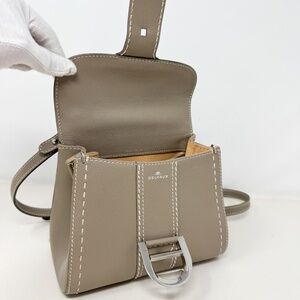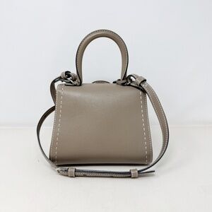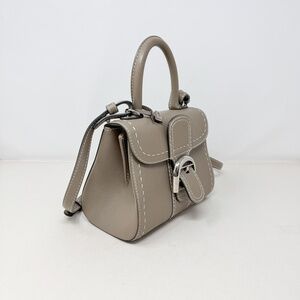Delvaux Grey Leather Brillant Mini Bag with Strap. Structured silhouette in smooth grey leather. Buckle front flap closure. Top handle and detachable shoulder strap. Leather-lined interior with slip pocket. Silver-tone hardware.