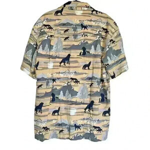 This unique mountain and wolf print button down shirt is perfect for many occasions. The shirt is in good preowned condition with no rips, holes, or stains. Please see images for approximate measurments and details.