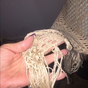 Demanding by Say What? Size medium beautiful crocheted vest with fringe at the bottom. The colors in pictures are true (tan/cream) only worn twice and is in excellent condition. Check out my closet for items this size to bundle. I offer a generous discount and reduced shipping on bundles of 2 or more items. All reasonable offers accepted