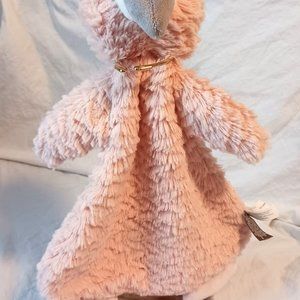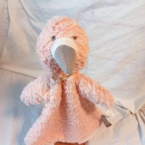 Demdaco Baby Lovey Peach-Pink Flamingo Gray White Face Flat Body Rattle 14"